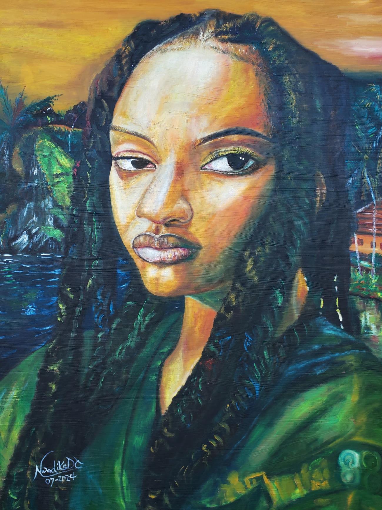 This painting, “Black Mona Lisa”, powerfully reimagines the timeless aura of da Vinci’s