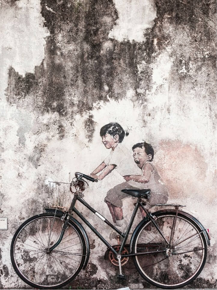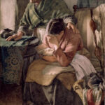 vulnerable, clings to a cow. The child’s nudity and frail state sharply contrast the ornamental beauty of